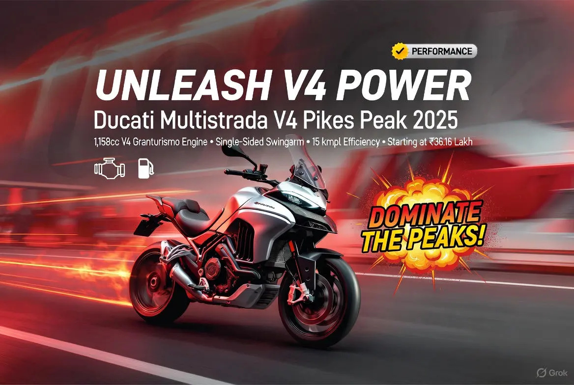 Ducati Multistrada V4 Pikes Peak 2025 – 1,158cc V4 Granturismo Engine, Single-Sided Swingarm & 15 kmpl Efficiency Starting at ₹36.16 Lakh!