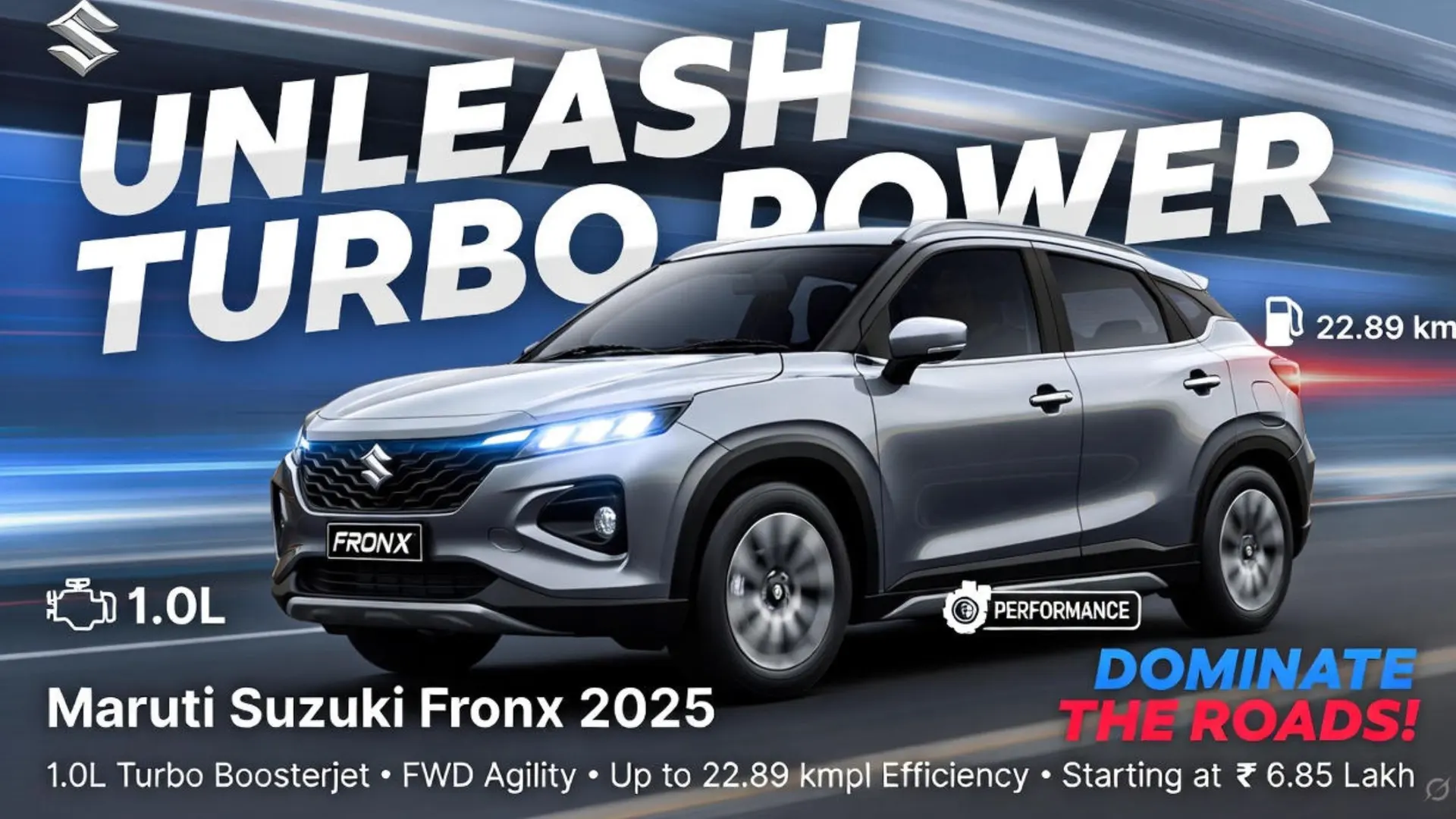 Maruti Suzuki has launched its all-new Fronx 2025, bringing next-level performance, style, and efficiency into a compact SUV. Priced at just ₹6.85 lakh, this vehicle combines a punchy 1.0L turbo petrol engine, responsive FWD handling, and impressive up to 22.89 kmpl mileage, offering drivers both power and practicality for city streets or rugged terrain. Ideal for enthusiasts seeking comfort, luxury, and capability in one all-in-one performance package. With its bold crossover design blurring the lines between hatchback agility and SUV presence, the Fronx 2025 stands out in a crowded segment, delivering Maruti’s signature reliability wrapped in premium Nexa flair. Whether you’re navigating urban chaos or embarking on weekend escapes, this budget-friendly beast promises thrill without compromise, backed by a recent 5-star ASEAN NCAP rating that underscores its safety prowess. Get ready to redefine your drive— the Fronx isn’t just an SUV; it’s your stylish companion for every journey.