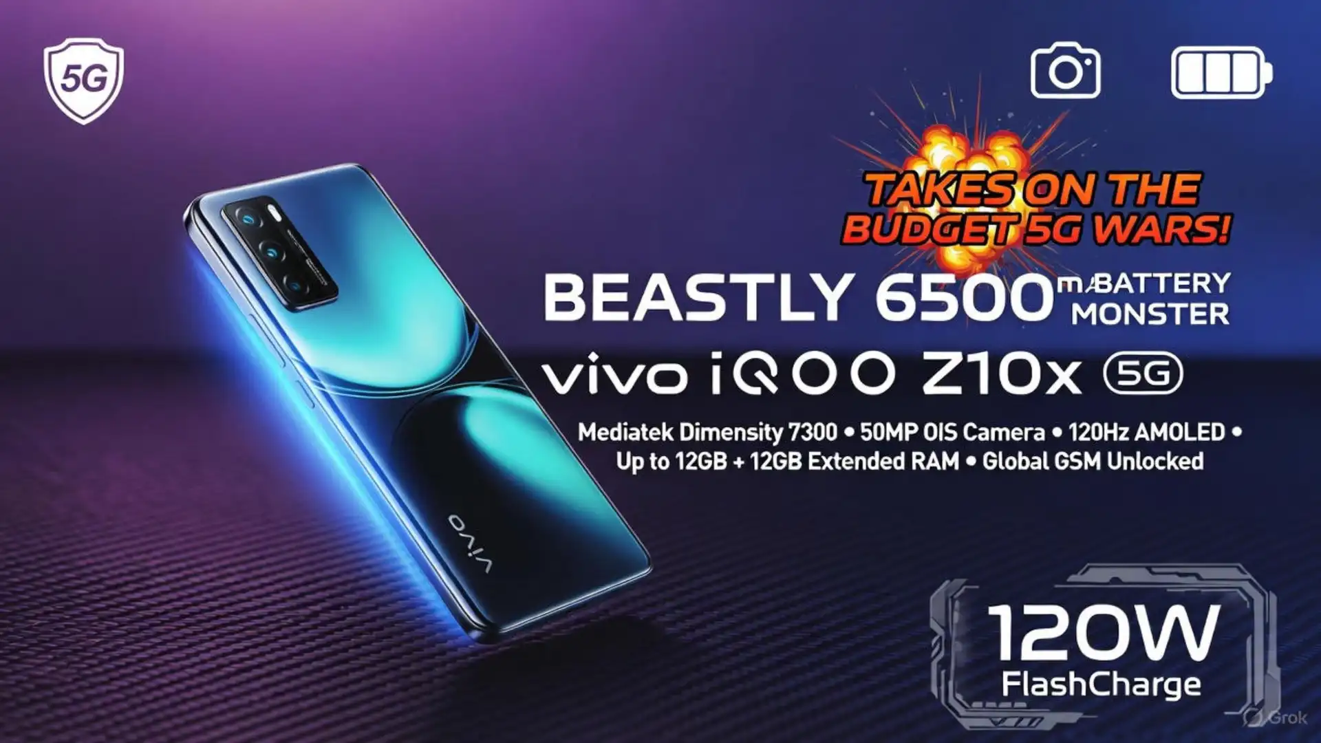 vivo iQOO Z10x 5G RAM Gsm Unlocked Phone Mediatek Dimensity 7300 50MP Beastly 6500mAh Battery Monster Takes on Budget 5G Wars!